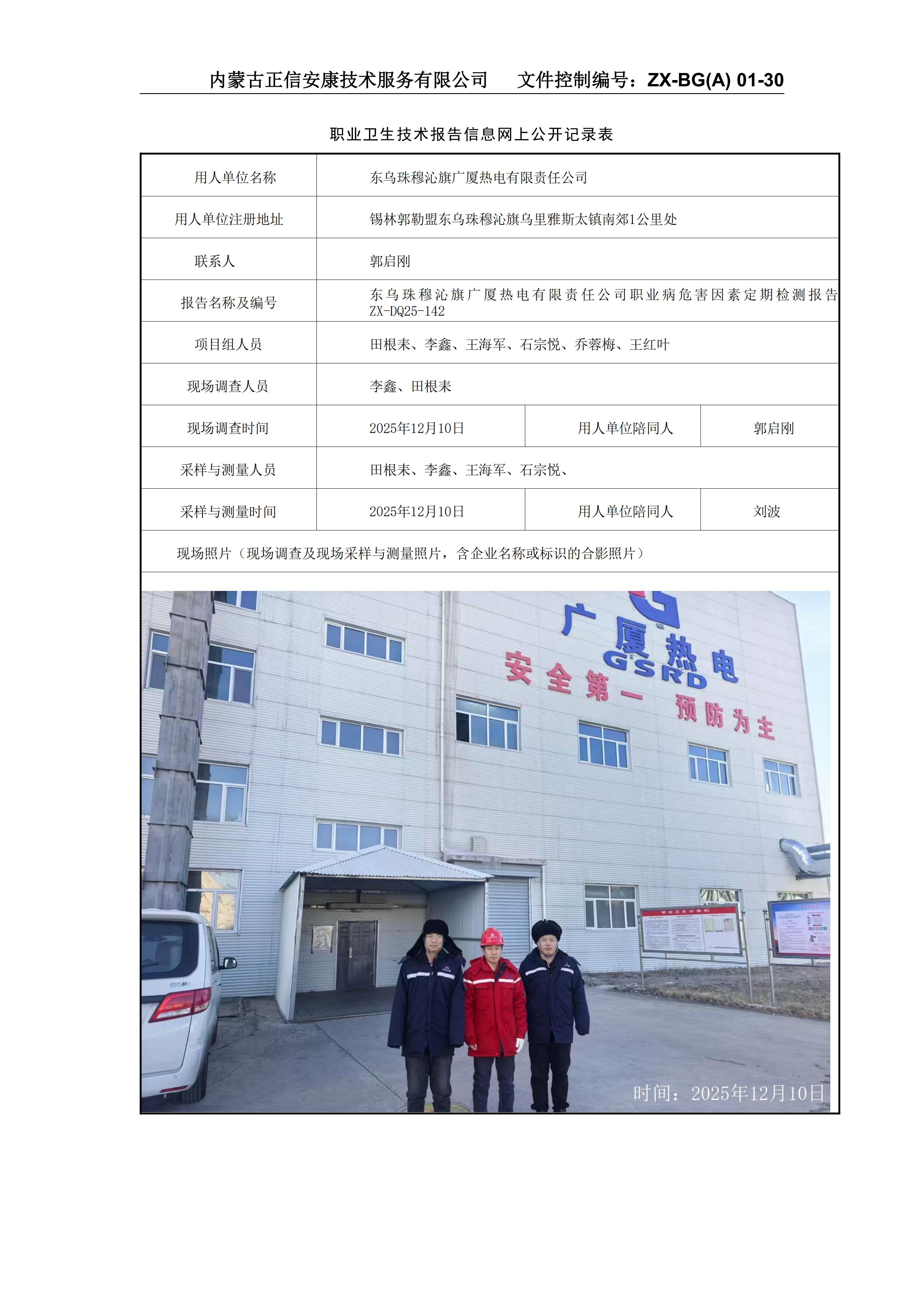 東烏珠穆沁旗廣廈熱電有限責(zé)任公司職業(yè)病危害因素定期檢測報(bào)告