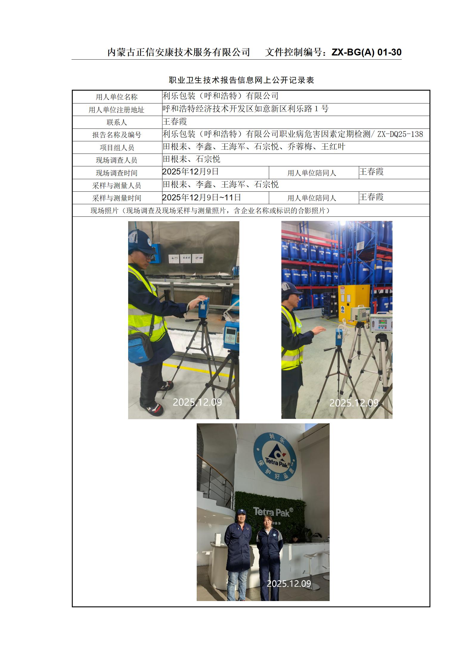 利樂包裝(呼和浩特)有限公司職業(yè)病危害因素定期檢測